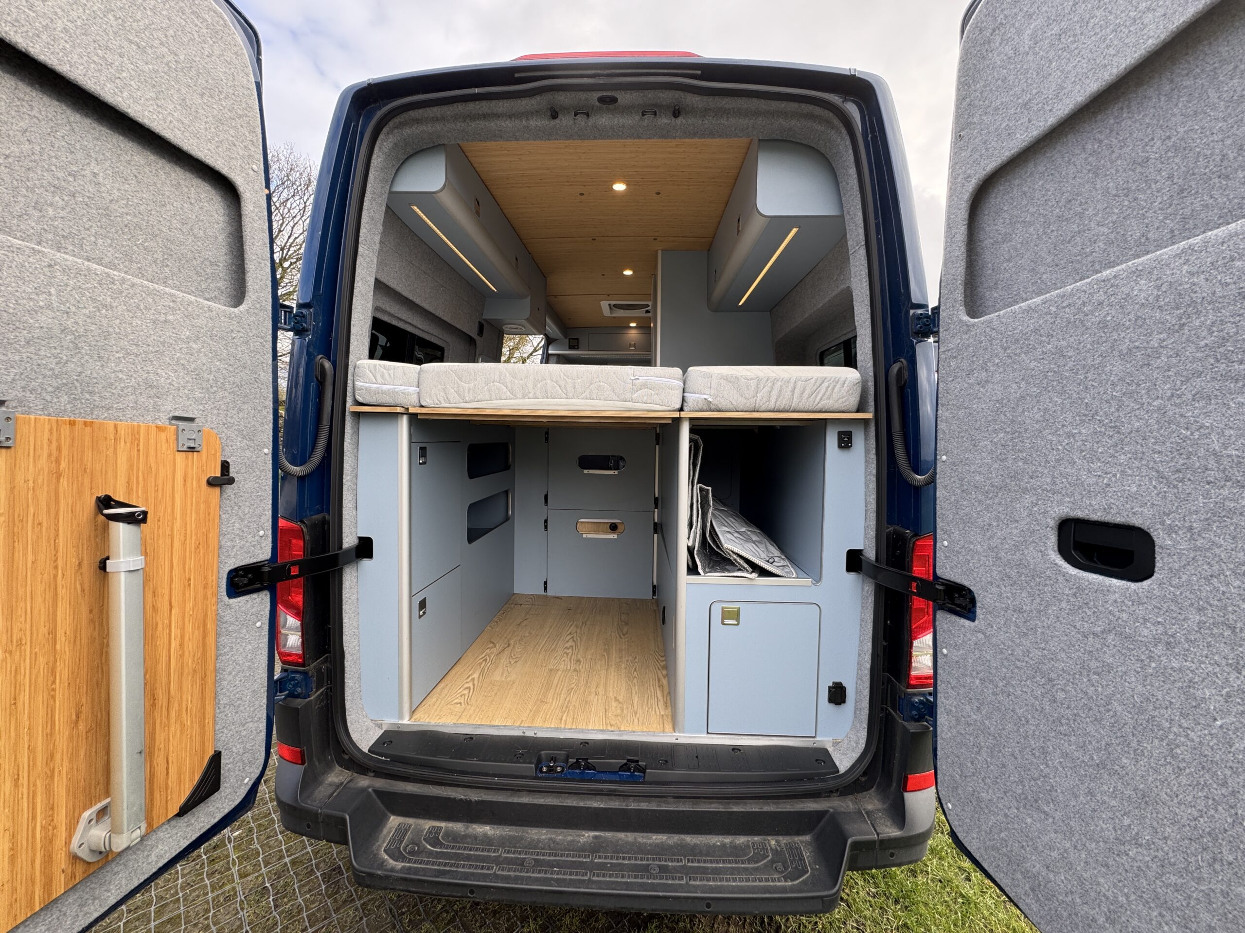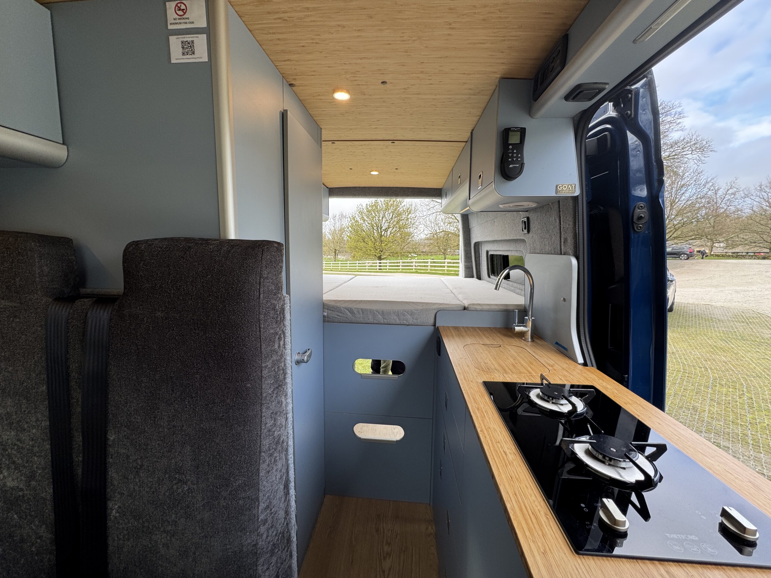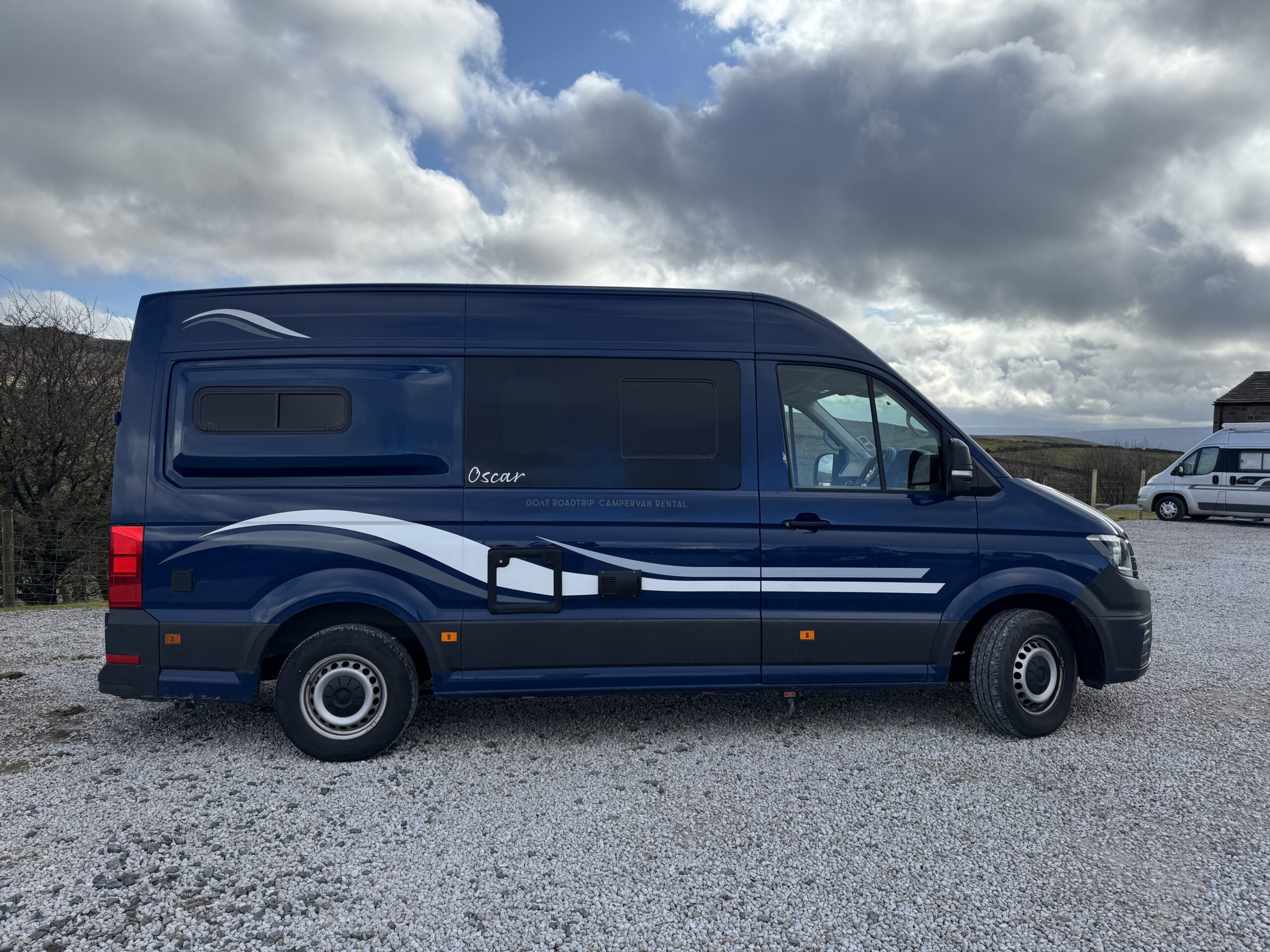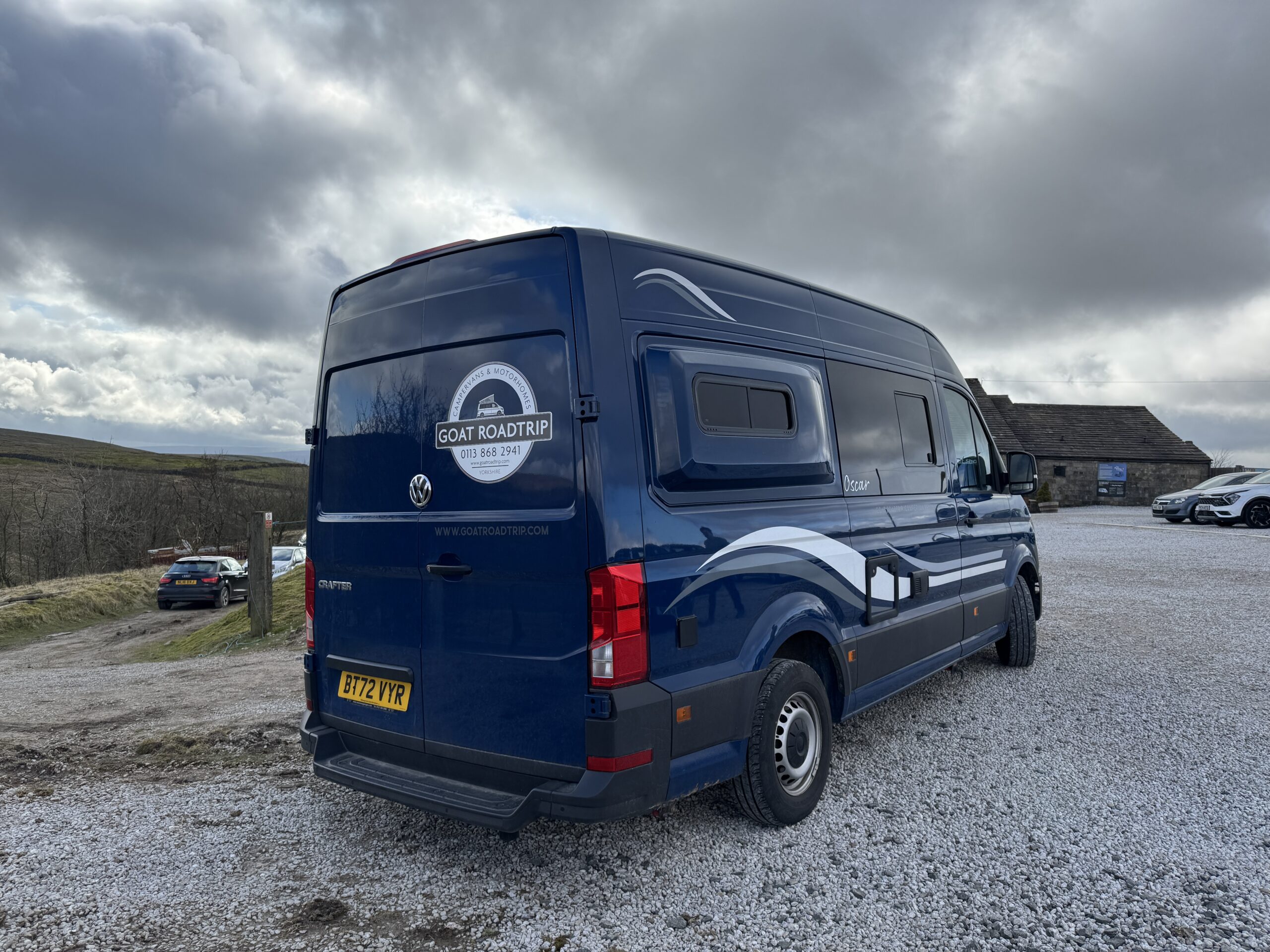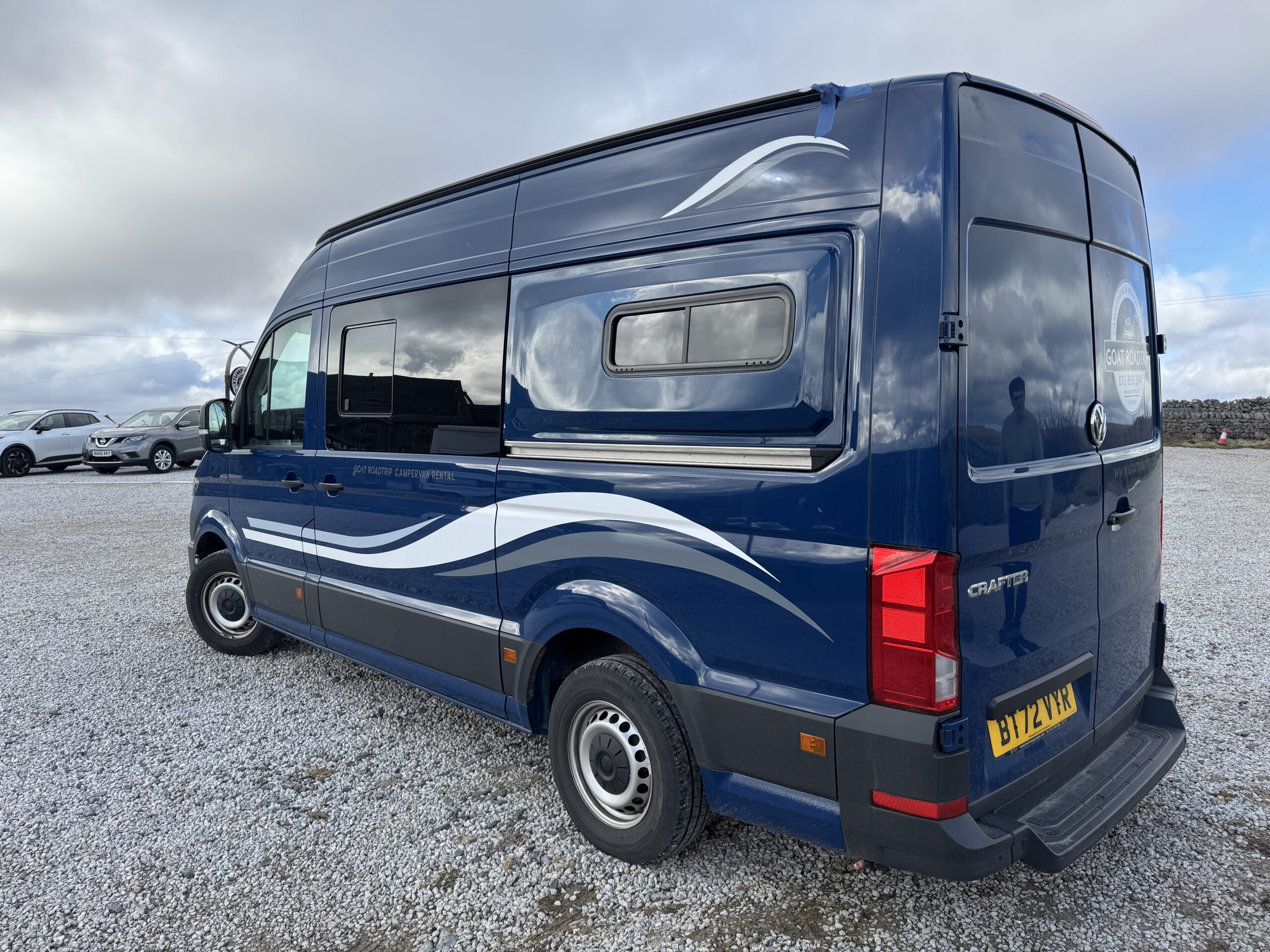 Introducing this stunning 2022 VW Crafter campervan conversion by GOAT Roadtrip, meticulously crafted for the ultimate travel experience. This MWB diesel-powered beauty seats four, with two lap belts in the back, and offers a smooth manual transmission. Stay cool with air conditioning and enjoy stress-free parking with built-in sensors. Inside, a fixed rear bed comfortably sleeps two and can be raised to create a spacious living area. The kitchen is equipped with a 2-burner hob, sink, and a 90L fridge with a freezer compartment. The electrical system includes a power management system, split charger, 240V sockets, electric hook-up, solar panel, and LED lighting. With a 94L fresh water tank and a 163L waste water tank, outdoor BBQ point, LPG gas tan, plus a separate shower cubicle and cassette toilet, this campervan provides all the conveniences of home, making it the perfect choice for any adventure.